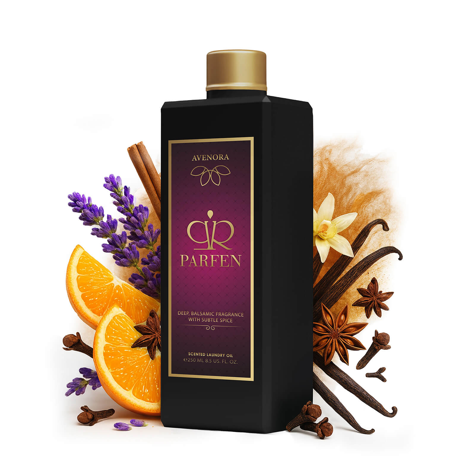 Parfem za rublje AVENORA kombinira note sočnih citrusa, čistoću lavande i orijentalni pridih začina. Nakon pranja ostavlja na odjeći svježe-orijentalan miris. Kada izvadite rublje iz perilice, osjetit ćete vrlo intenzivan i jedinstven miris. Postupno se aroma omekša i na odjeći ostaje dugotrajna, svježe-baršunasta aroma koju ćete osjećati i tjednima nakon pranja.