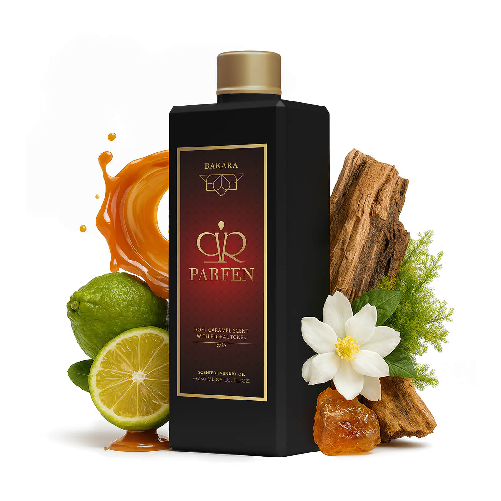 Rublje oprano s parfemom BAKARA miriše ambrovo i elegantno. U mirisnoj kompoziciji ovog parfema za rublje spajaju se iskričave citruse note, sladak karamel i privlačna ambra. Odjeća ili posteljina nakon pranja ostaju svježi, ali s nježnim pridihom luksuza i senzualnosti. BAKARA svaku odjeću pretvara u vrijedni komad.