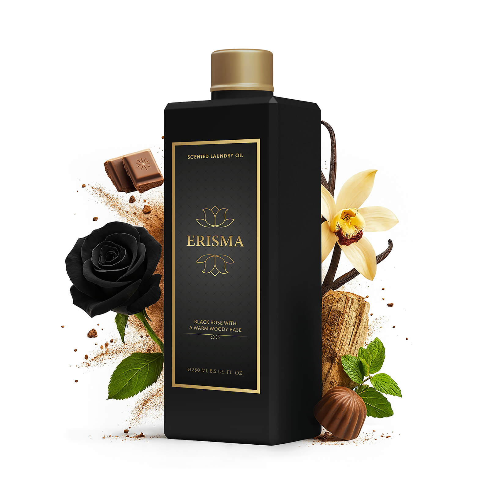 Parfem za rublje ERISMA daje vašem svježe opranom rublju dašak tajanstvenosti. Nakon pranja ostavlja na odjeći intenzivan, topao cvjetno-drvenast miris koji podsjeća na egzotične vrtove pune ruža i dragocjenih začina. Kada odjeću nakon nekog vremena izvadite iz ormara, miris se omekša. Vaša će odjeća mirisati vrlo ugodno na slatku vaniliju.