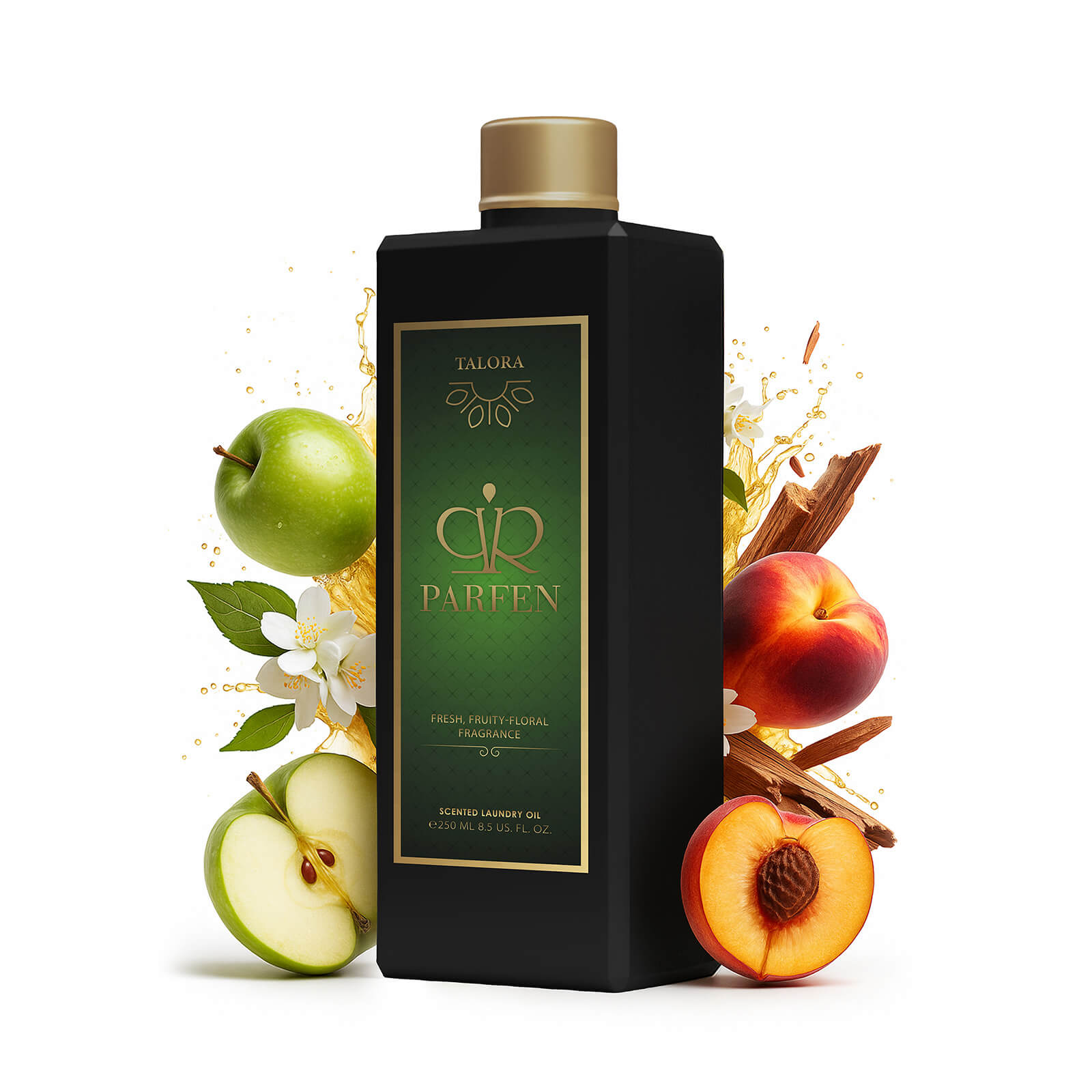 Tražite alternativu klasičnom omekšivaču? Ako želite svježe rublje s daškom sočnog voća, parfem za rublje TALORA je pravi izbor za vas. Sadrži sočne tonove breskve i jabuke koji u kombinaciji s ostalim sastojcima stvaraju dojam šetnje kroz cvjetni voćnjak pun pozitivne energije.