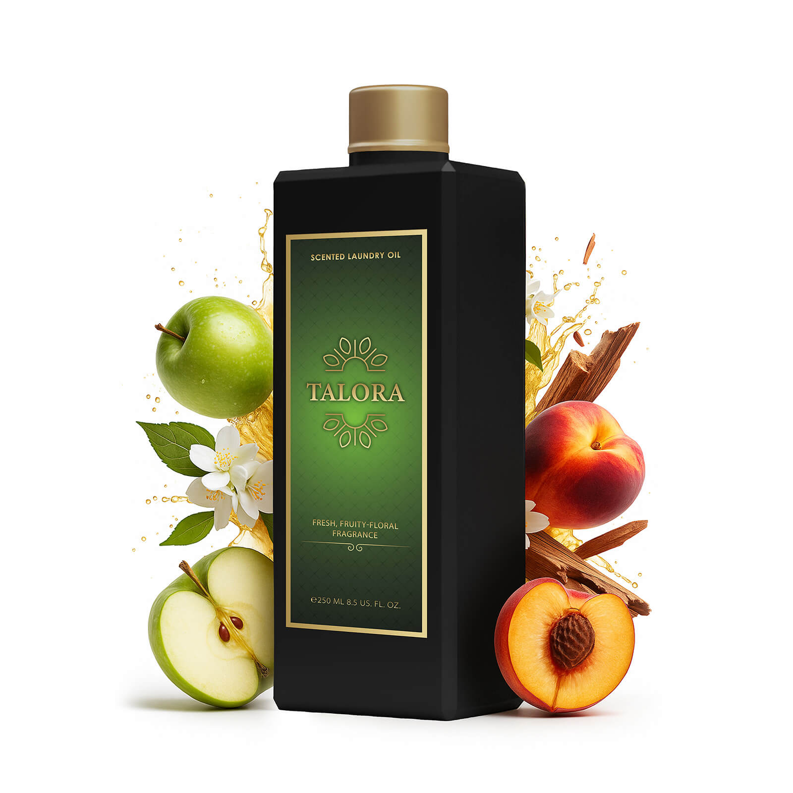 Tražite alternativu klasičnom omekšivaču? Ako želite svježe rublje s daškom sočnog voća, parfem za rublje TALORA je pravi izbor za vas. Sadrži sočne tonove breskve i jabuke koji u kombinaciji s ostalim sastojcima stvaraju dojam šetnje kroz cvjetni voćnjak pun pozitivne energije.