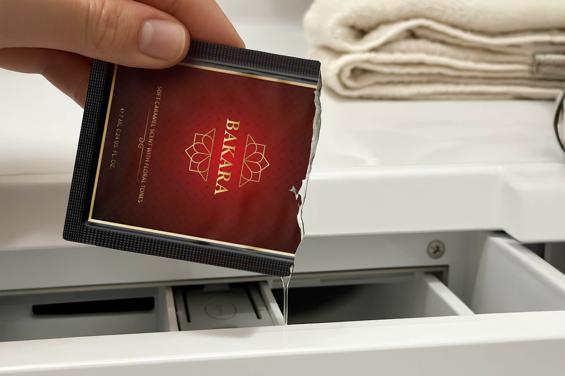 Rublje oprano s parfemom BAKARA miriše ambrovo i elegantno. U mirisnoj kompoziciji ovog parfema za rublje spajaju se iskričave citruse note, sladak karamel i privlačna ambra. Odjeća ili posteljina nakon pranja ostaju svježi, ali s nježnim pridihom luksuza i senzualnosti. BAKARA svaku odjeću pretvara u vrijedni komad.