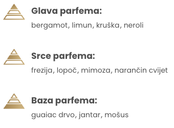 Ženu vedre naravi zasigurno će očarati parfem Vanitas. Laganog je i osvježavajućeg mirisa, idealno za tople ljetne dane. Bilo da ga koristite tijekom uobičajenog radnog dana ili u slobodno vrijeme, uvijek će vam dati osjećaj lakoće i dobrog raspoloženja. Parfem ima svijetlu i svježu cvjetnu kompoziciju. tahićanski gardenija i frezija lijepo su osvježene limetom u glavi parfema, dok mu drveni akordi cedra i tonke daju eleganciju. Zahvaljujući tome, ovaj lagani cvjetni miris postat će vaš veseli suputnik tijekom dana.